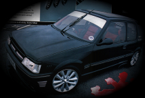 Lowered 60mm all round, AVO coilovers at front, Standard rear, but lowered 60mm Wheels & Tyres: 7x16 Smiths Ipon Alloys, 195/45/16 Pirelli Drego P5000 Rubber. Body-Styling: Active Auto Design side skirts, PPM roof spoiler, single wiper conversion and c-pillar badges, Peugeot Sport rear valance, LmA mirrors and eyebrows, Modified R&A rear Gold diffuser, Auto bonnets of diesel 205. Everything chromed you mad man! |